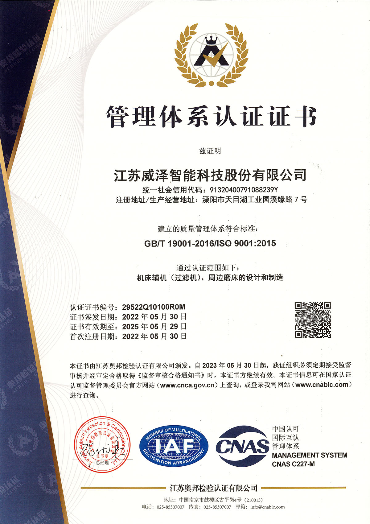 管理体系认证证书